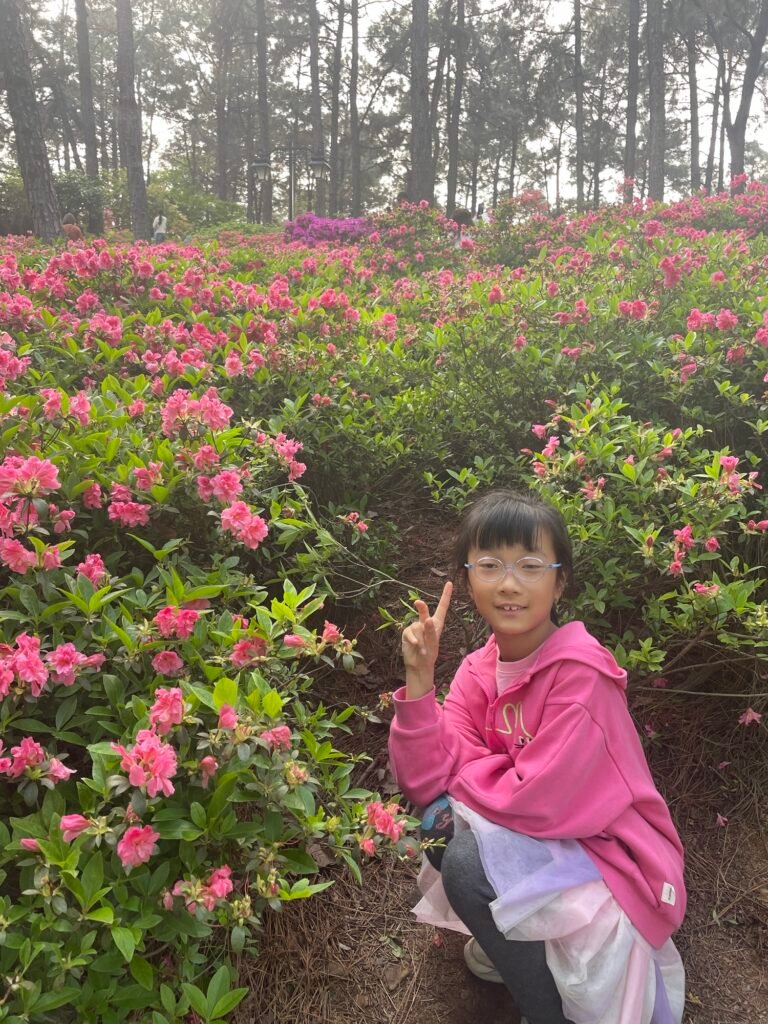 下午我们出发去临平山爬山了,今天天气真不错,我们先走了环形的步行走廊,是一圈一圈走上山顶的,然后就看到了满山的映山红,杜鹃花,可漂亮了,我觉得这简直是天堂,一路走一路逛,后面还有游乐场和小小动物园,今天真开心,晚上火锅大餐我也吃了不少,
